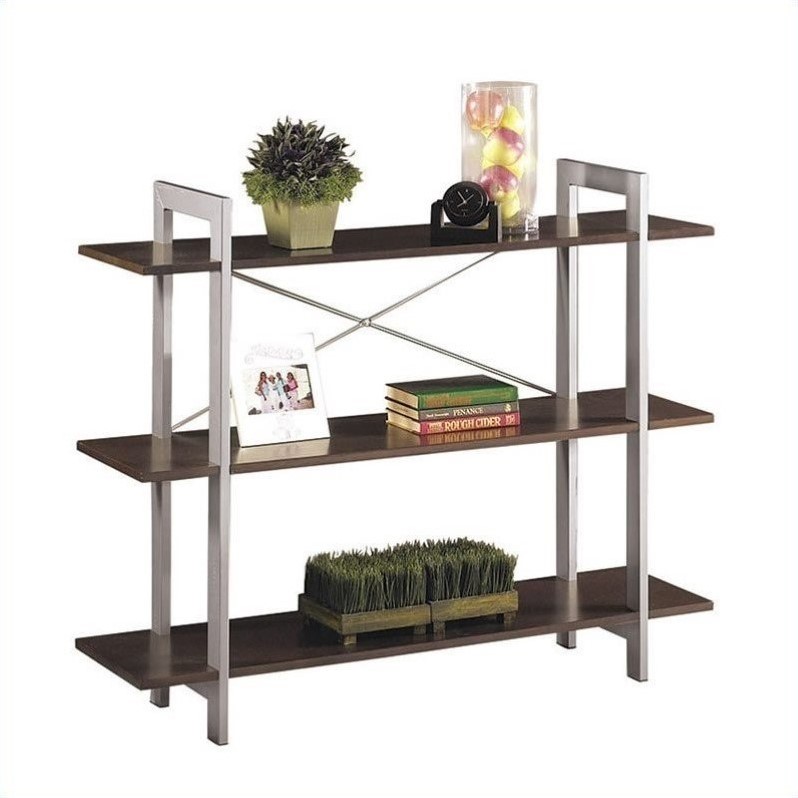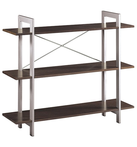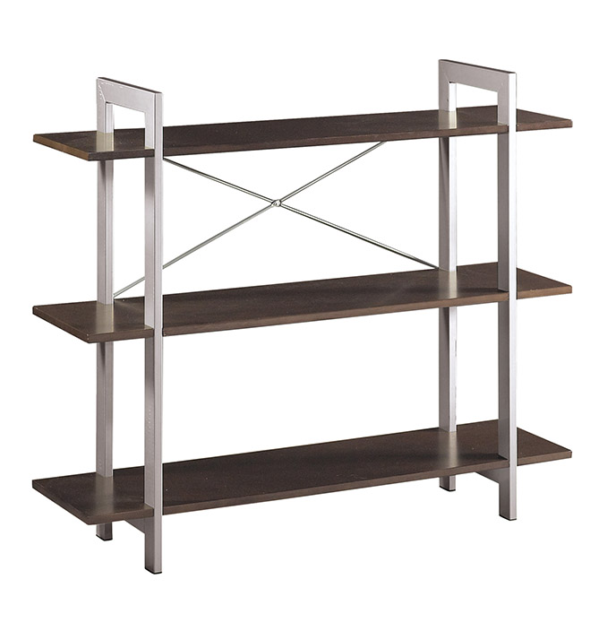 Shop for Bookcases from BookCasesGalore.com! Perfect for storage or display the X-Text Bookcase features a modern design and airy style that will add sleek beauty to your home's decor. An X accent behind the middle shelf adds a unique element of visual interest to this piece. Three open shelves provide the perfect place to store books and display your favorite treasures. Constructed of wood solids and veneers with a rich espresso finish on the shelves and brilliant silver accents this bookcase is just what you need to add contemporary punch to .. Read more info click!