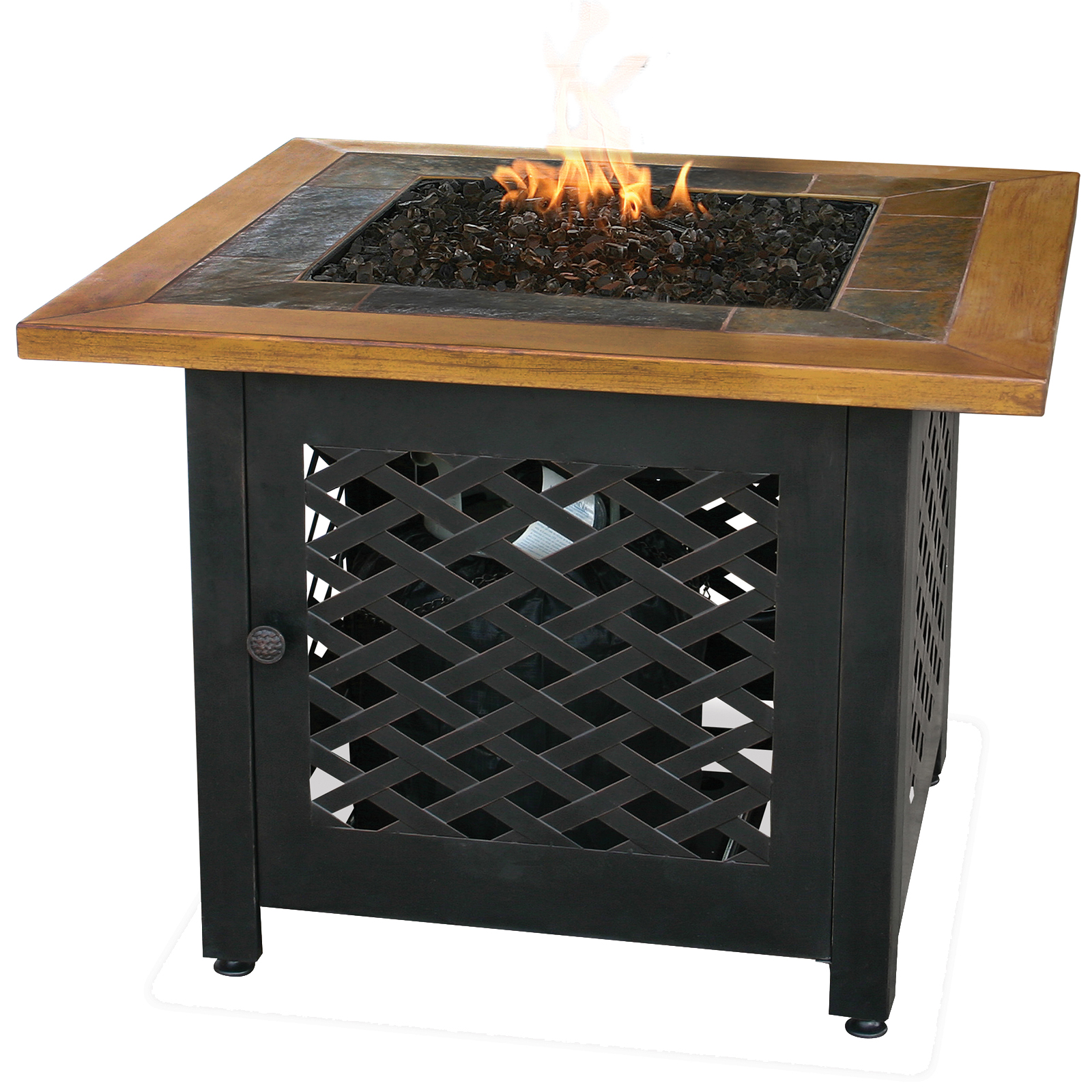 Shop for Fire Pits and Fireplaces from Hayneedle.com! Center your outdoor space around something stately like the UniFlame Square LP Gas Outdoor Firebowl with Slate and Faux Wood Mantel. This square fire table places a uniquely weather-resistant slate tile and faux wood tabletop on a lattice-work steel base that hides its fiery belly. Open the access door and slide out the 20 lb. LP tank with its convenient tank drawer. It puts out up to 30 000 BTUs through a stainless steel burner in the bottom of the firebowl covered with elegant fire rock fo.. Read more info click!